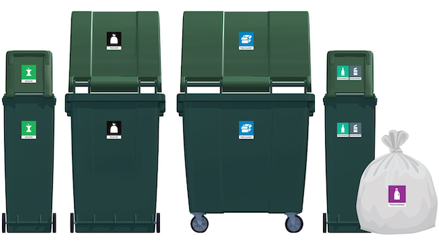 # INFO Renovasjon Sorteringsguide Avfallshåndteringen i sameiet er ivaretatt med utplassering av fire ulike avfallsdunker, som jevnlig tømmes av søppelbiler fra RfD (renovasjonsetaten for Drammensregionen). Avfallsbeholderne er plassert bak...